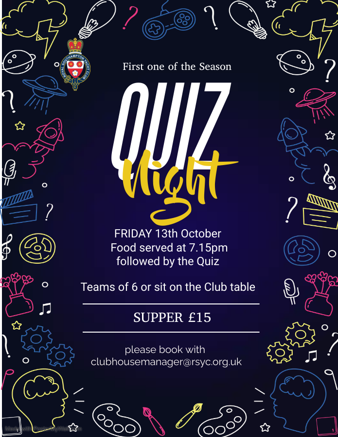 Starts 7pm £18 per person including food. Please book with clubhousemanager@rsyc.org.uk |