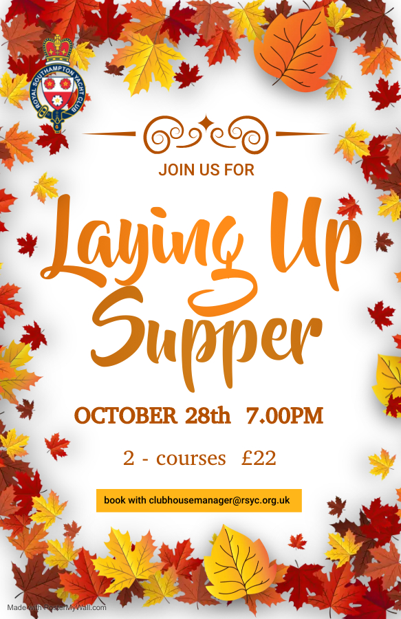 Starts 7pm £30 for 3 - course menu Please book with clubhousemanager@rsyc.org.uk |